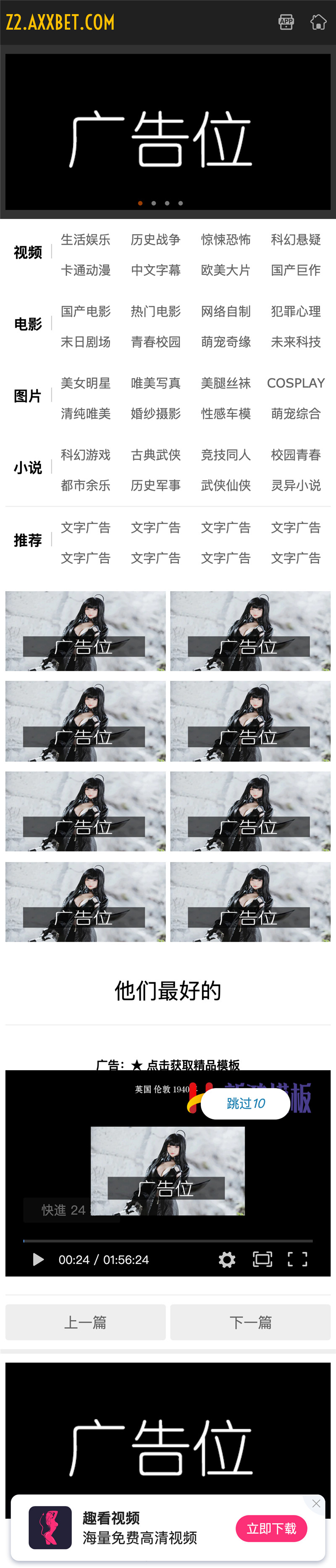 | 苹果CMS模板介绍: 苹果cms10响应式Z2主题模板,苹果CMSV10模板,响应式手机端,Z2主题模板,免费下载。 苹果CMS模板安装教程:开发环境:苹果cmsv10 UTF8 空间支持:PHP5.6 +MySQL 安装环境:PHP5.6及以上+MySQL5.5以上 模板附件为完整苹果CMS安装包,安装后还原数据库,还原后账号admin 当然如果你当心安装问题,也可以只安装模板,不用附件内的苹果CMS程序。 广告修改:staticjsuiads base.js-杂乱广告自行查看 common.js-头部横幅,8小格广告,底部横幅 pls.js-播放页文字广告 资源截图: |