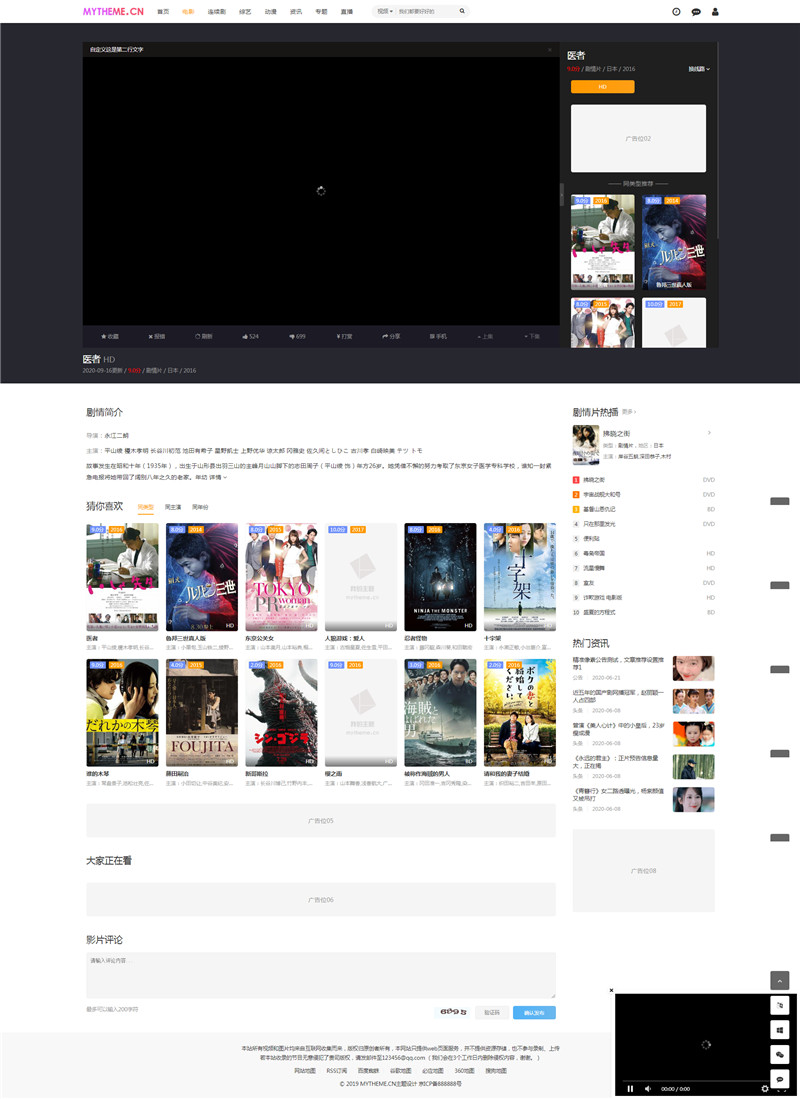 自带3款播放器样式、3个播放列表样式、4个皮肤风格、3个幻灯样式,包含了会员、专题、资讯、明星、评论、下载、留言页面等样式及全部功能。