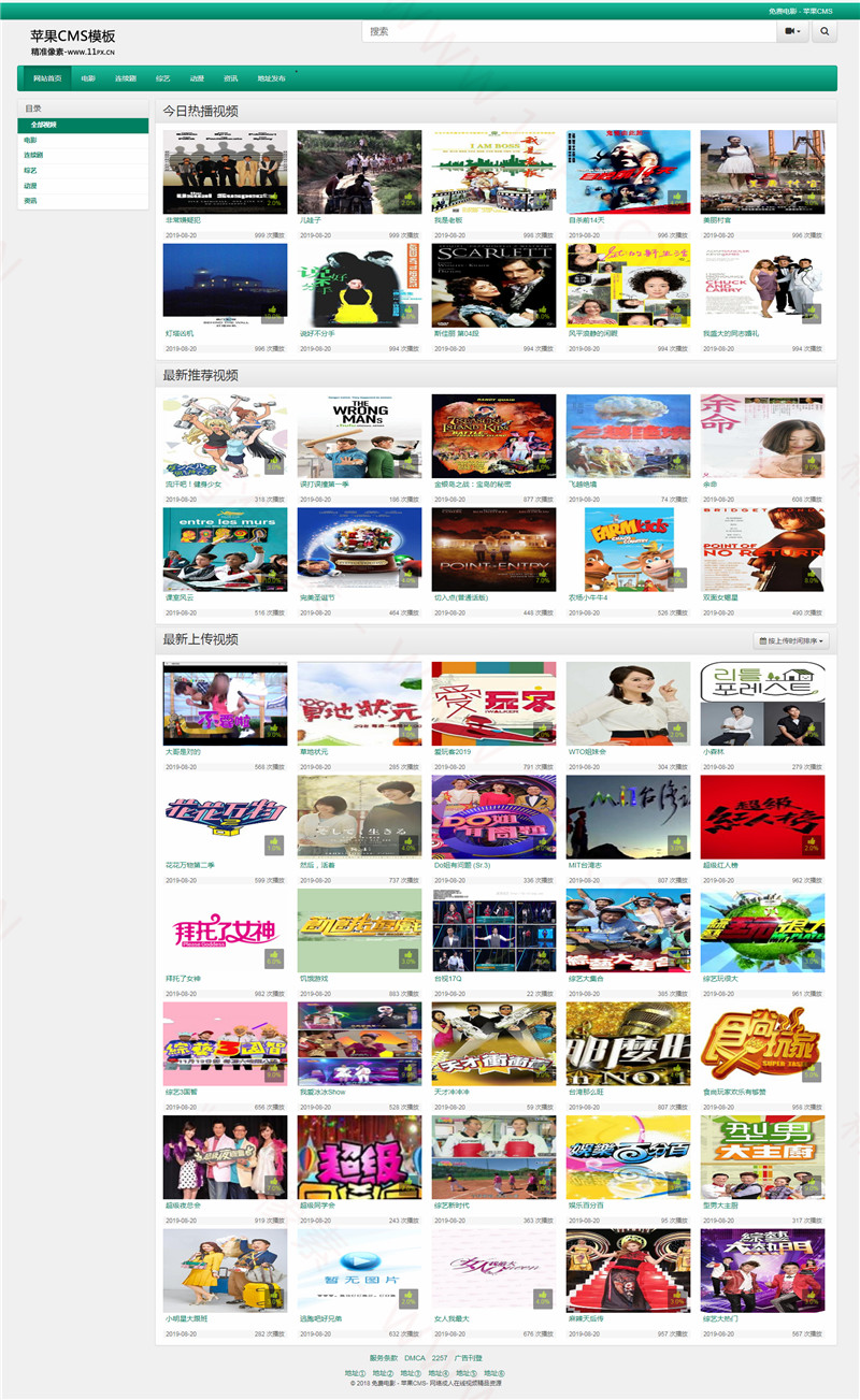 绿色自适应影视模板,绿色风格,苹果CMSV10模板,自适应手机端,免费下载。