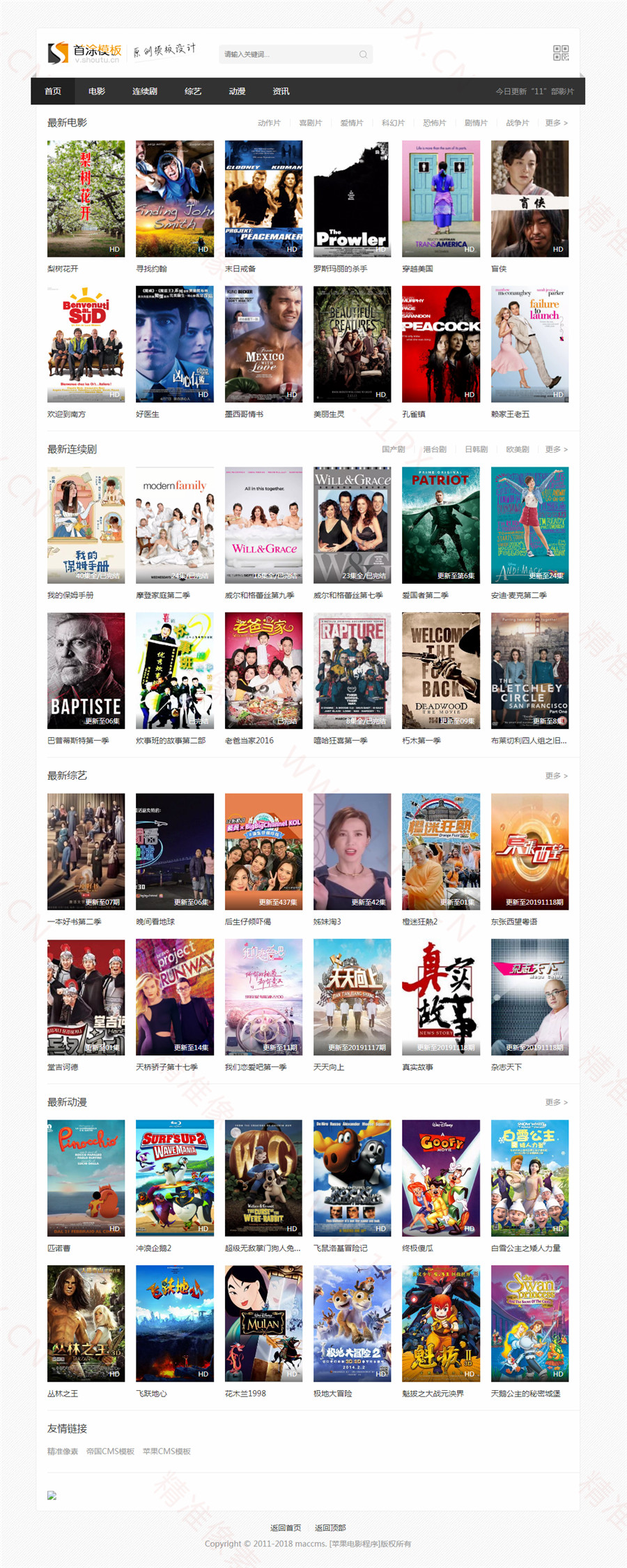 | 苹果CMS模板简介: 首途黑色自适应模板,支持苹果CMSV10版本,UTF8编码,自适应兼容PC、平板、手机分辨率,完美无错,免费下载。 |