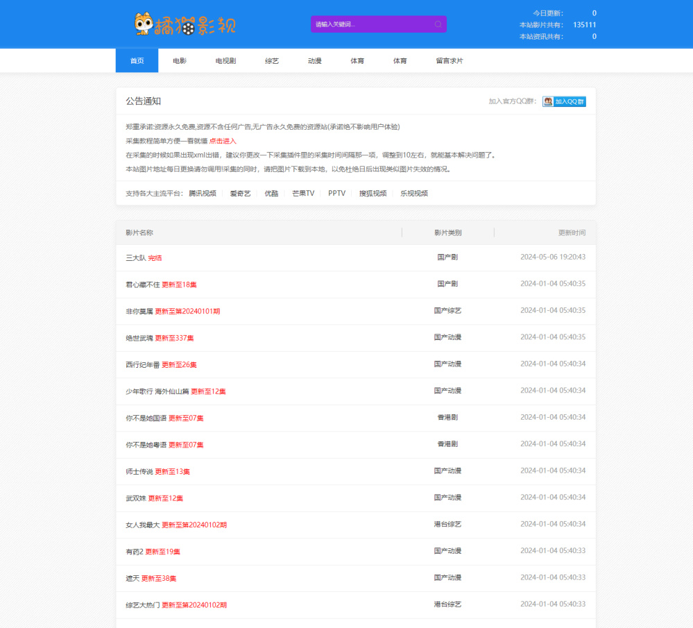 放测试,可单链接或批量链接复制。本模板是一款专为苹果cms v10打造的一款资源站模板,使用本模板需要自行搭建苹果cms V10程序,本模板包含了:详情页、播放