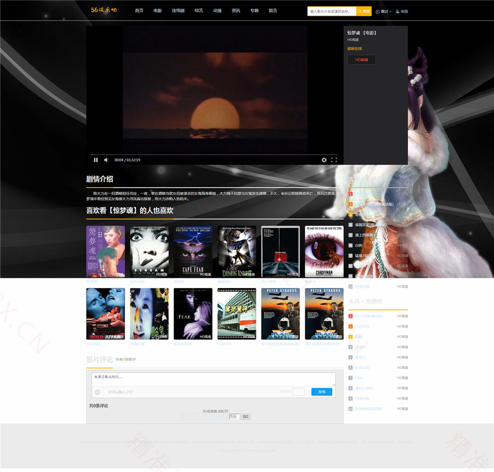 亲测完美无错黑色卡通背景风格苹果CMS模板,模板分为首页、列表、播放页、新闻列表页、新闻内容页。
