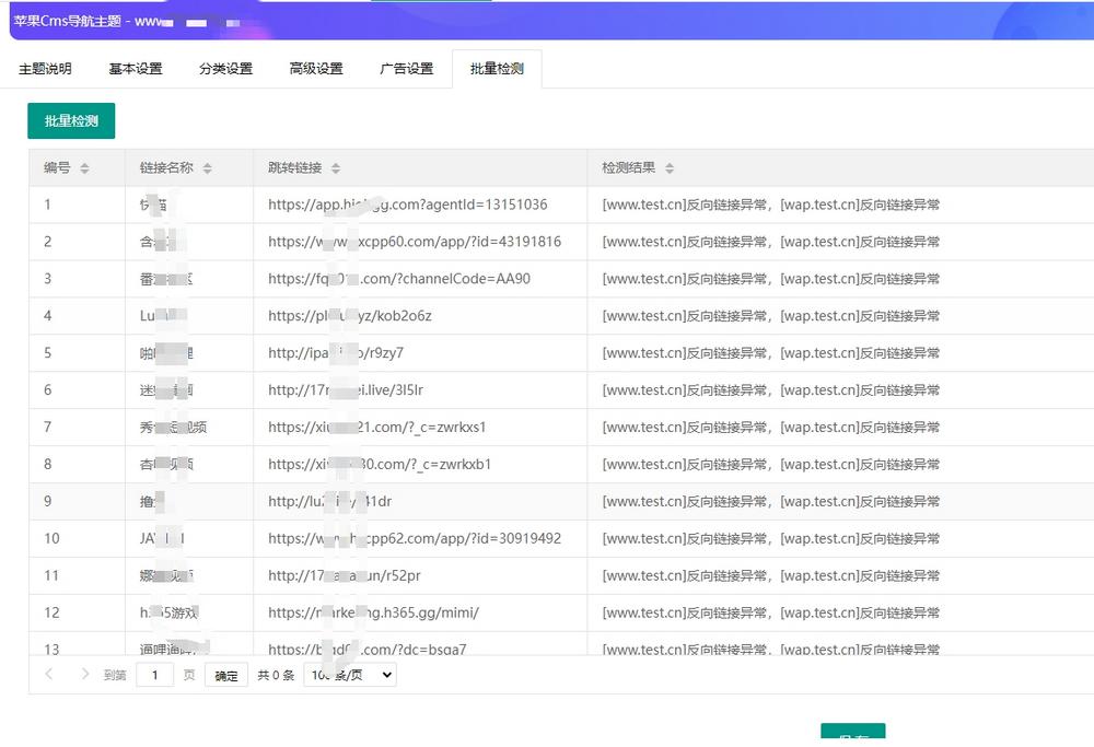 苹果cms导航模版,基于老王版本苹果cms开发,支持批量检查网址等等,有能力的可以自行二开成视频导航一体站。