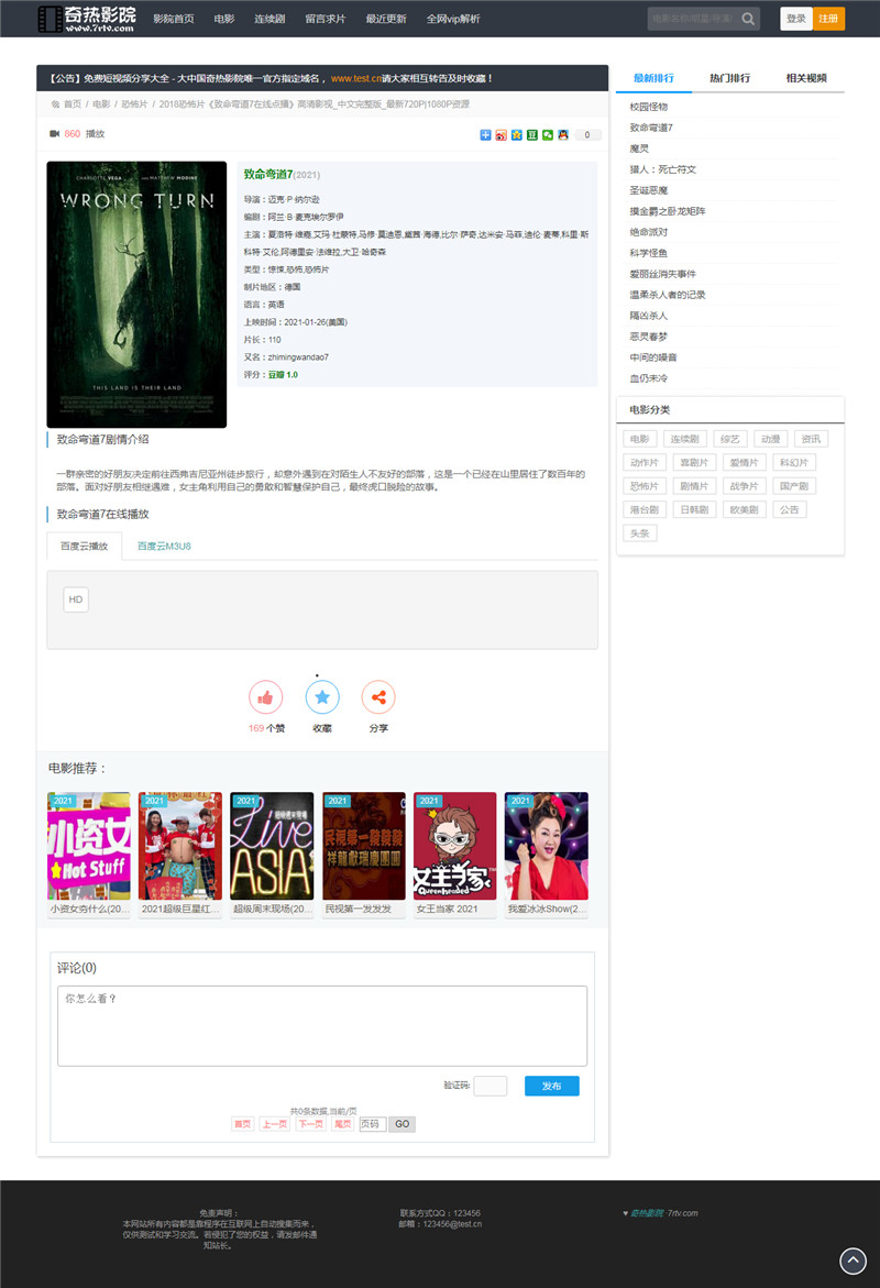 | 模板说明: 苹果cmsV10仿奇热影院自适应网站模板,自适应手机端,苹果CMSv10版本,已测试,完美无错。 大图设置推荐9,小图设置推荐1 安装方法都一样,复杂到目录后台设置下就可以了。 模板截图: |